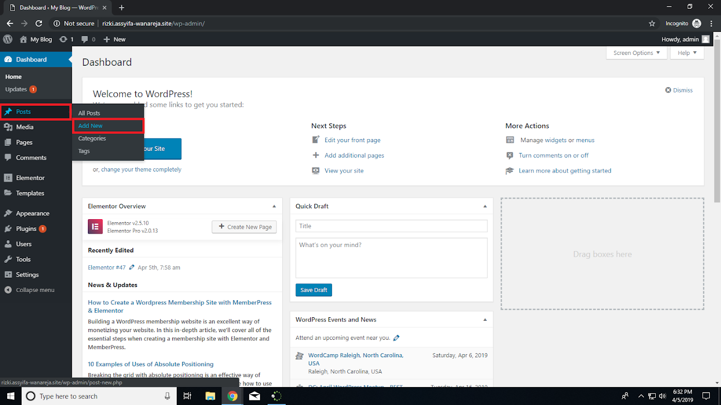 Sebelum memulai tutorial cara membuat postingan baru di wordpress, pastikan pembaca sudah masuk ke halaman dashboard admin wordpress, bagi yang belum tau dapat membaca tutorialnya disini.