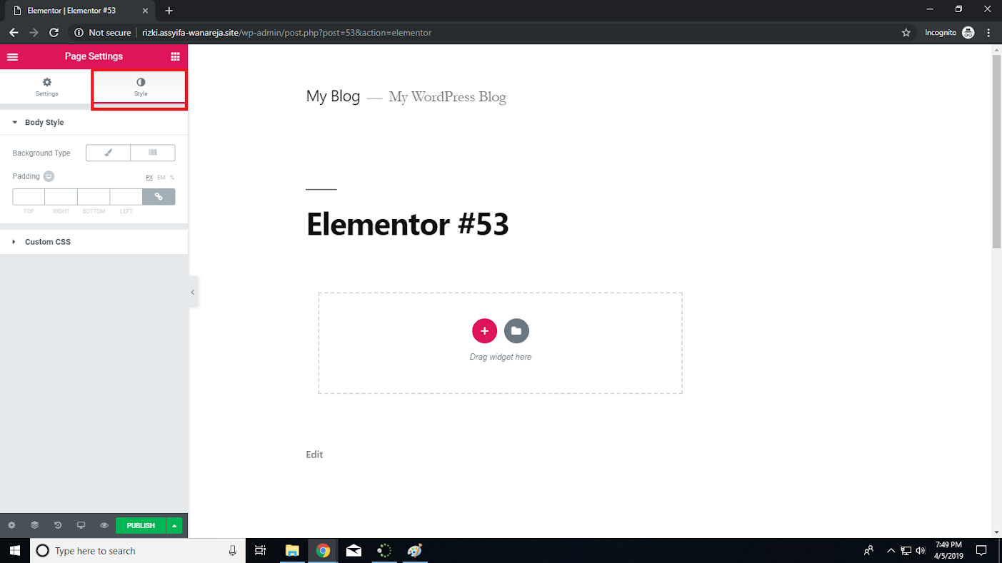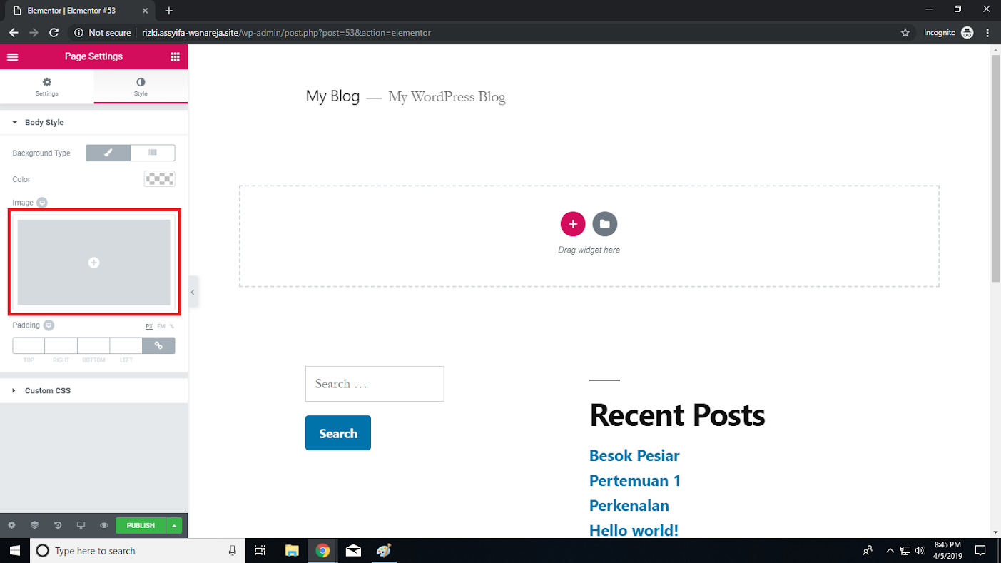 Pada tutorial sebelumnya penulis menuliskan bagaimana cara mengubah judul page dan layout page. Pada kesempatan kali ini penulis akan menunjukan bagaimana cara mengganti background (latar belakang) page elementor (page yang diedit menggunakan plugin elementor).
